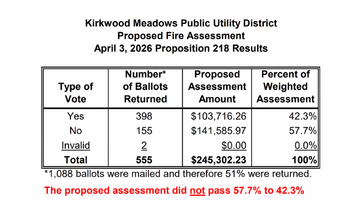 Click here to view the results of the KMPUD Proposed Fire Assessment Prop 218 Ballot